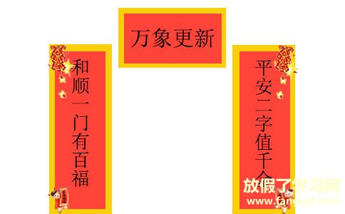 上联:开门迎春春光拂面,抬头见喜喜气满堂。