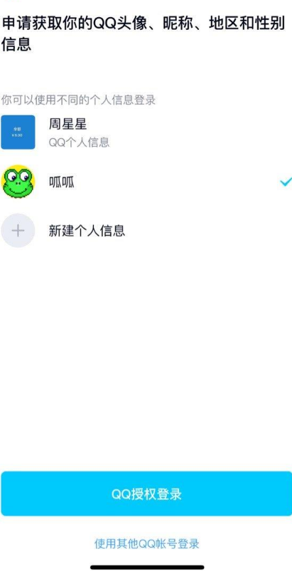 QQ随机身份登录方式1、点击打开授权页面,点击页面上的“随机头像与昵称”。